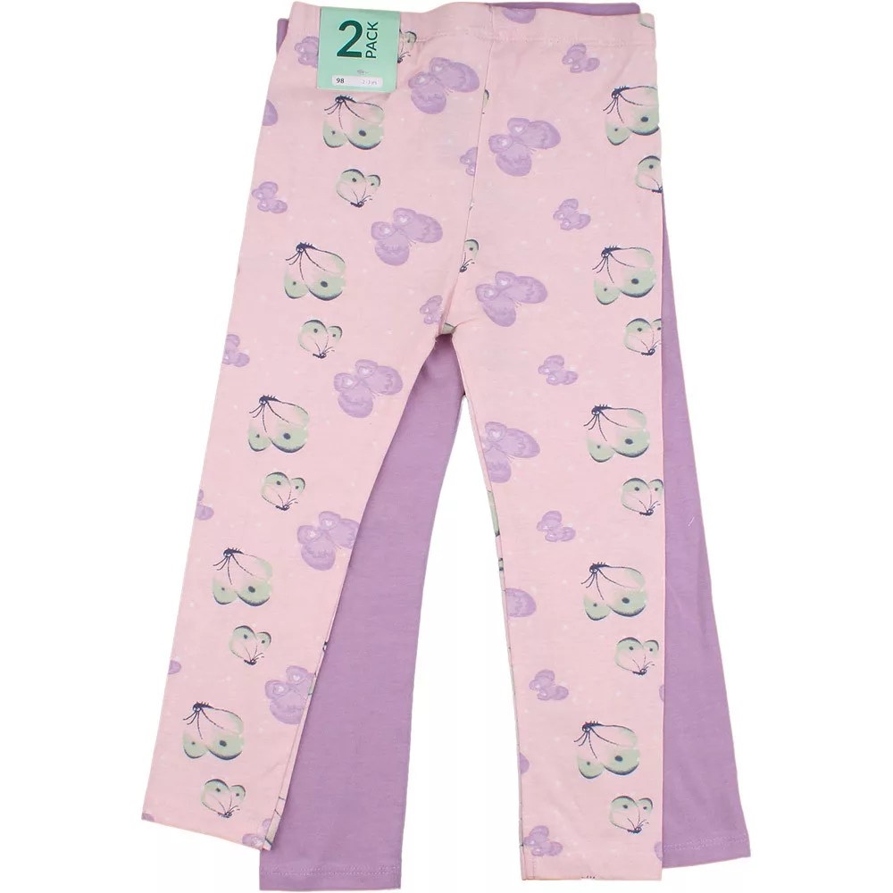 Zweiteiliges Leggings-Set: Eine Leggings in sattem Lila und die andere in Rosa, verziert mit lila Schmetterlingen. Bequem und vielseitig kombinierbar. Neu, mit Etikett.